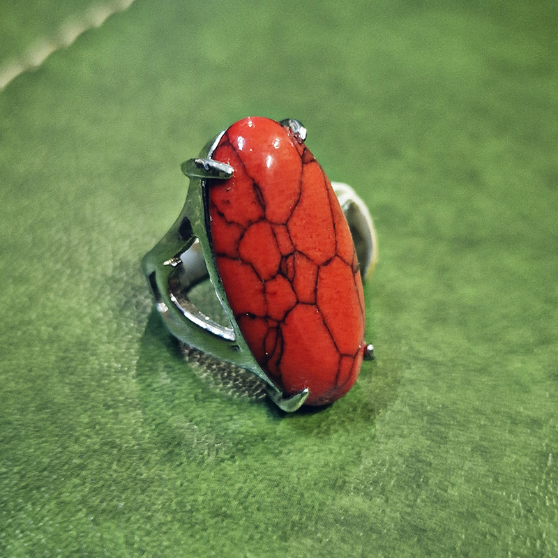 Anillo de piedra roja ovalada